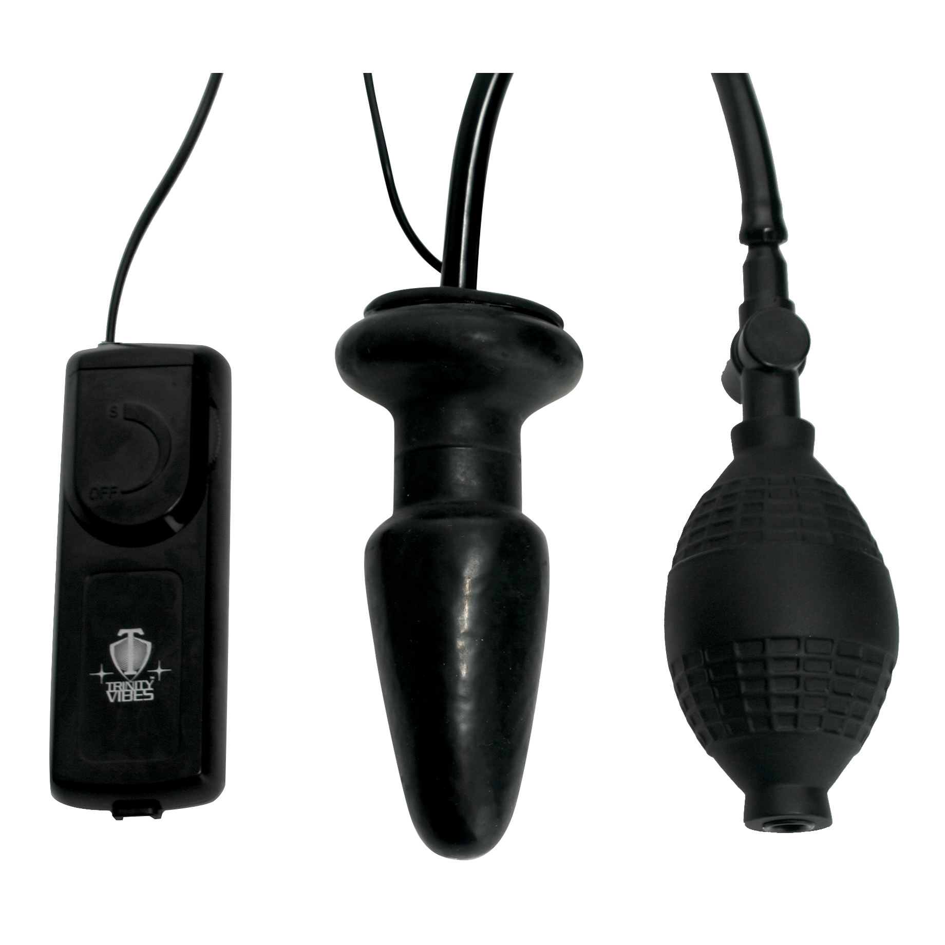 Get plugged in to an anal pleasure wonderland with this rubber plug Inflate… Vibrate… Penetrate… Anal pleasure awaits. Multi-speed gets you there fast Measurements: Deflated: 5 inches in total length, 4 insertable, 1.65 inches in diameter; Inflated: 6 inches in total length, 5 insertable, 3.5 inches in diameter Material: Latex, ABS Color: Black Note: Requires 2-AA batteries, not included